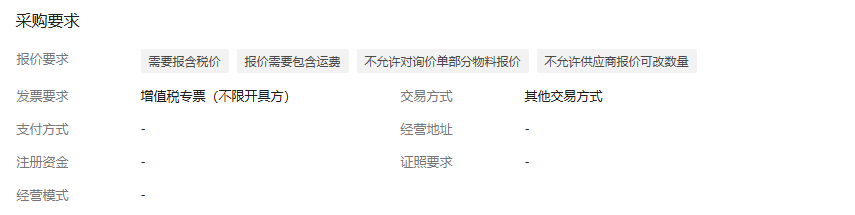 | 行号 | 物料编码 | 物料名称 | 品牌 | 型号 | 物料描述 | 采购量 | 单位 | 价格类型 | 是否送样 | 对供应商附言 |