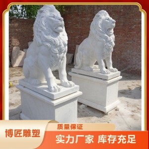 门口动物雕塑批发 校园雕塑石狮子 纹路雕刻细腻 款式多样 1对