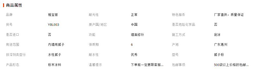 广东腻子粉厂家雅宝丽内墙室内墙面刮大白腻子粉打磨刷漆 开票跨境 10袋