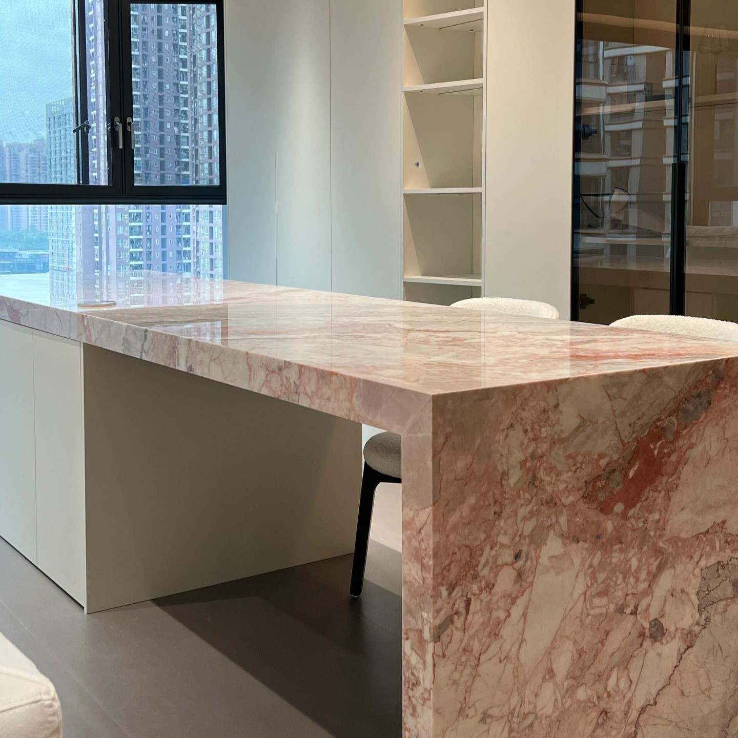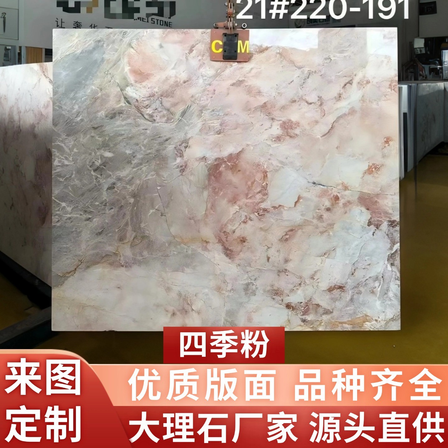 四季粉天然大理石板材地面别墅背景墙外墙石材楼梯岛台橱柜面台 1平方米