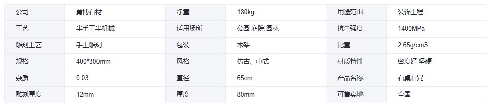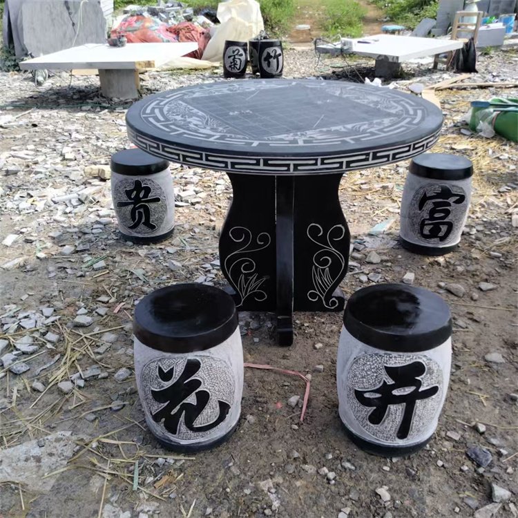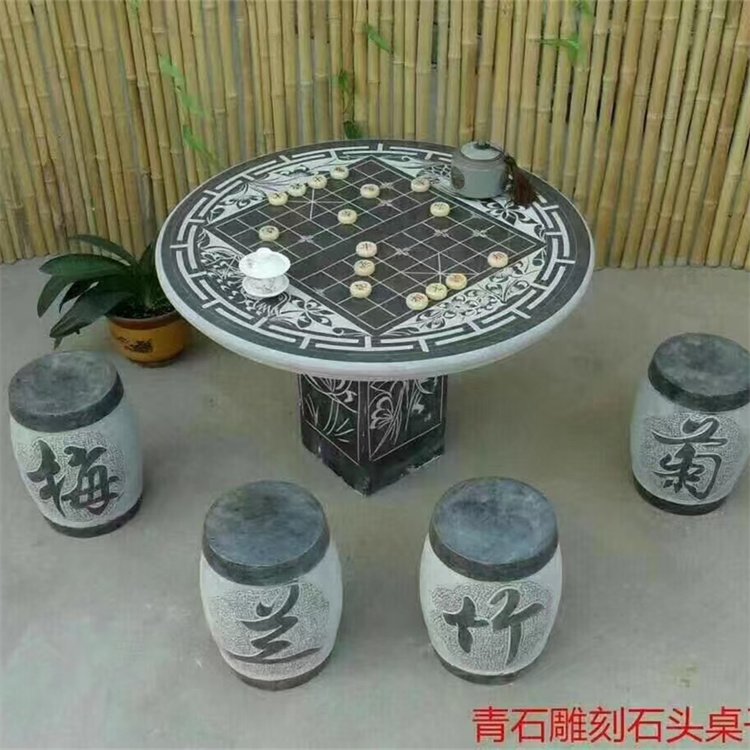 庭院花园石桌 公园古建青石桌子 户外休闲桌椅 1套