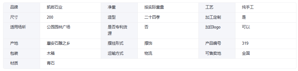 芝麻黑二十四孝石雕 传统人物24孝雕塑 做工精湛 凯岩石业 1件
