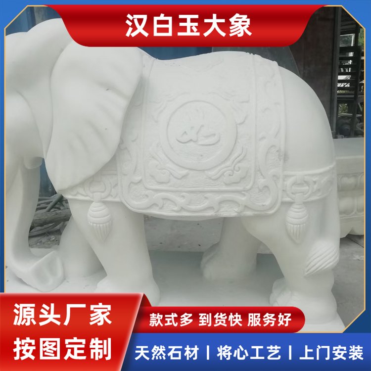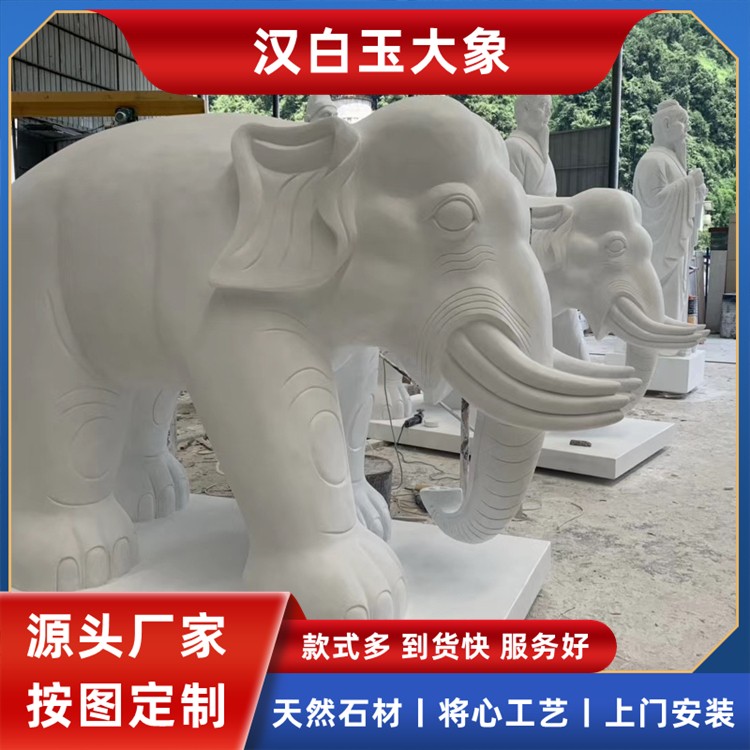 酒店门口摆件 石雕大象汉白玉 质感高雅 库存充足 厂家批发 1对