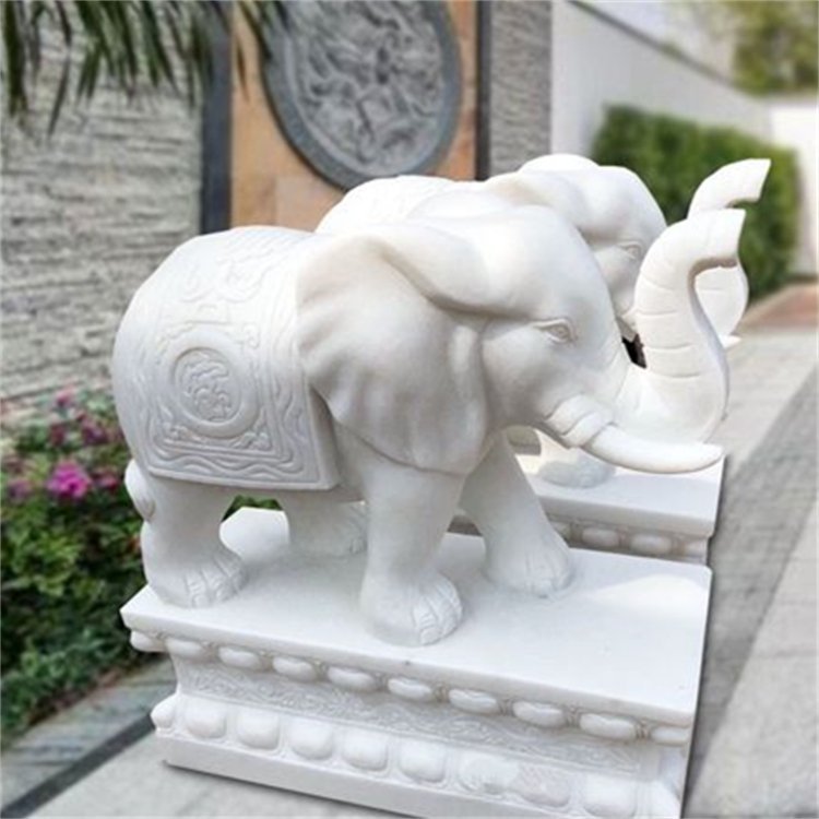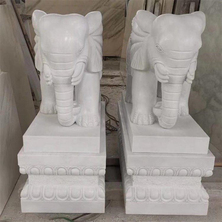 石雕动物大象 家用汉白玉大象摆件 门口摆放招财石雕塑 1件
