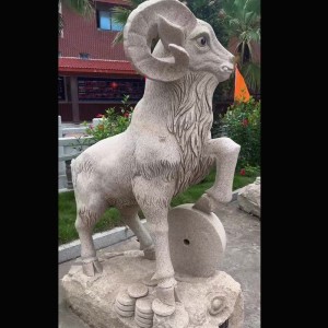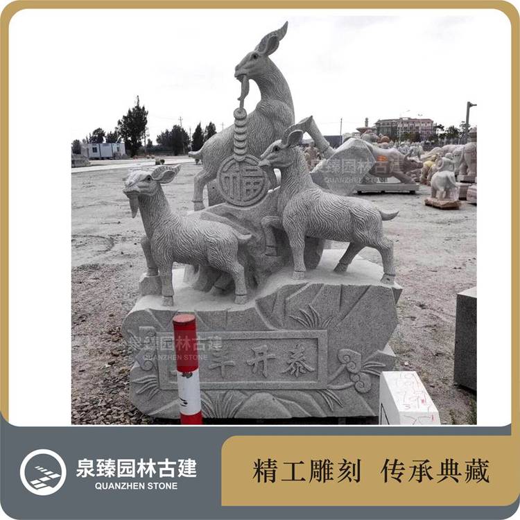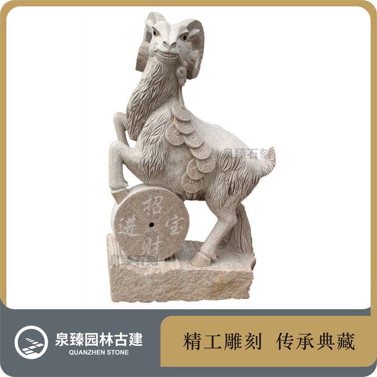 三阳开泰石雕 羊雕铜钱 山羊 园林十二生肖动物 1件