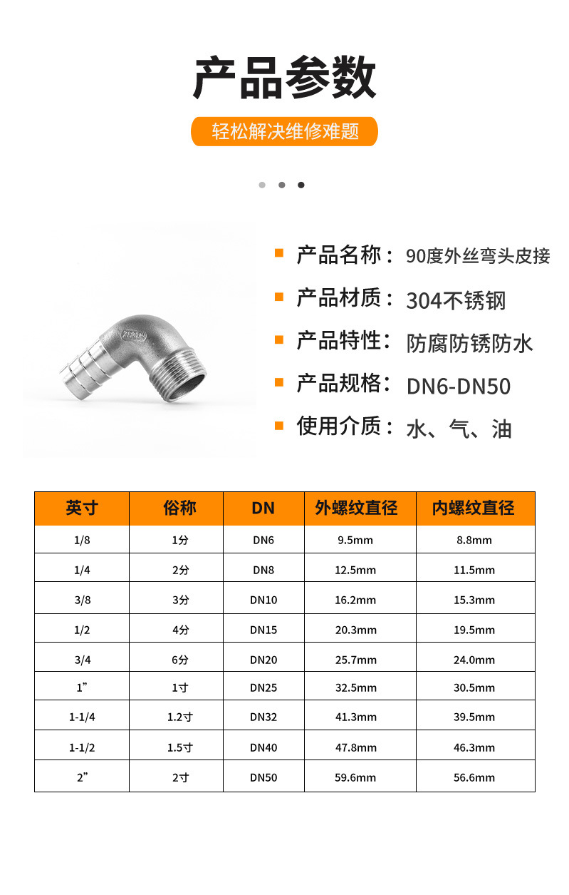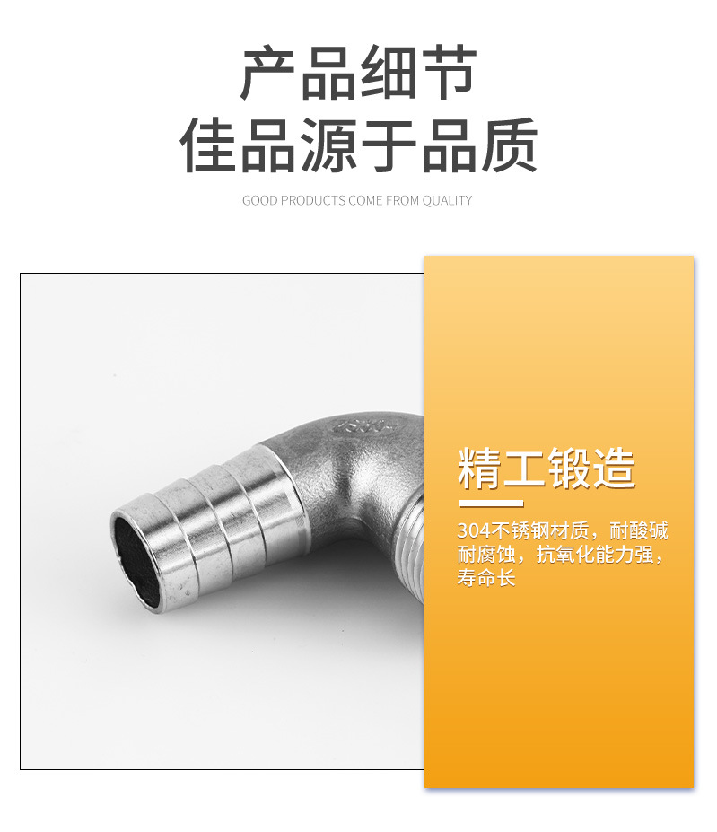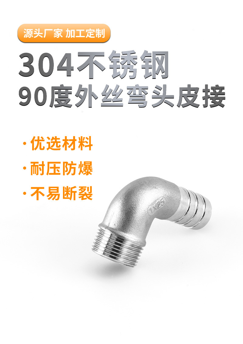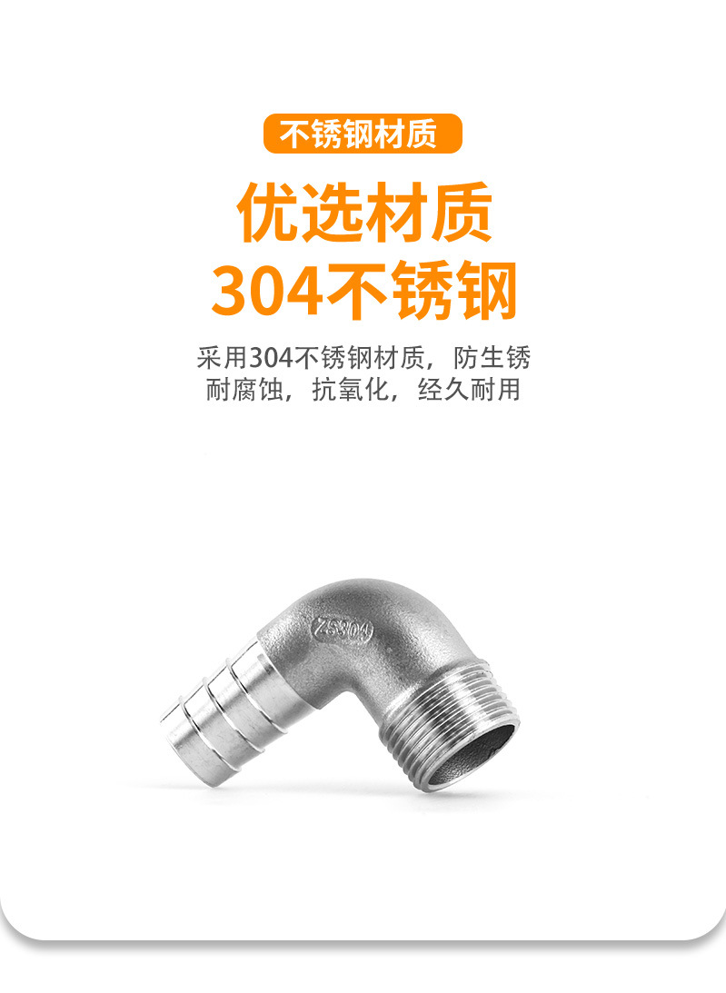 不锈钢宝塔接头304外丝弯头皮接90度外螺纹软管水管快接竹节格林