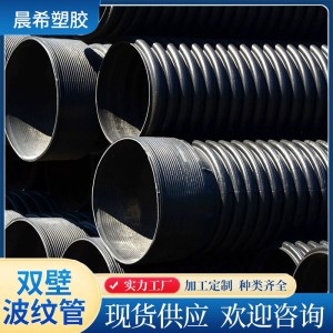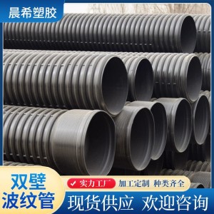 PE双壁波纹管是一种以聚乙烯为原材料,经过挤出和特殊的成型工艺加工而成,内壁光滑,外壁为封闭波纹型的一种新型轻质管材。