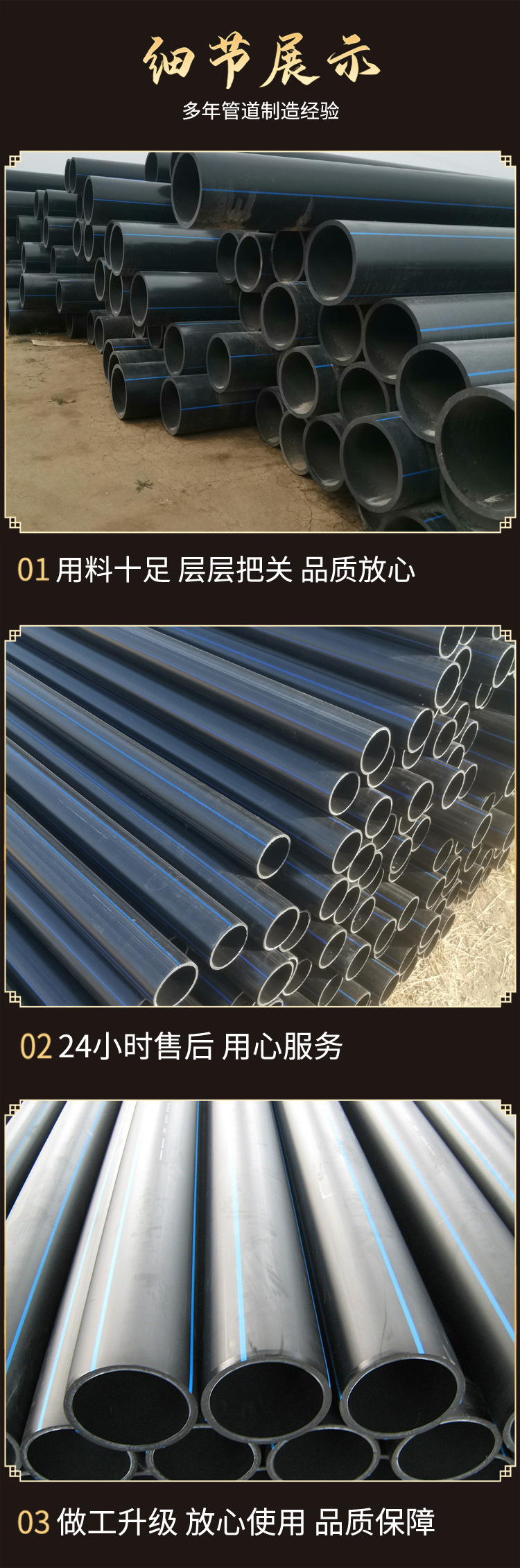HDPE给水管大口径pe管160 200灌溉管高密度聚乙烯Hdpe自来水管