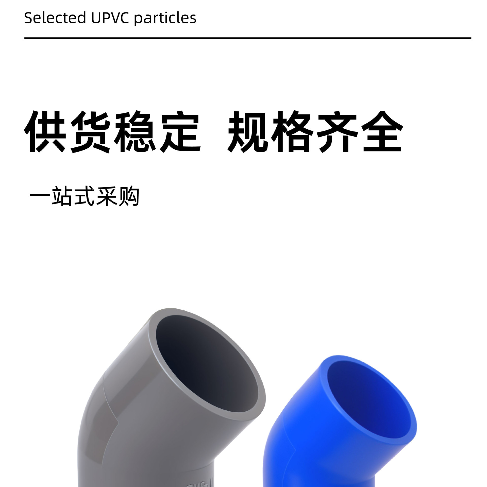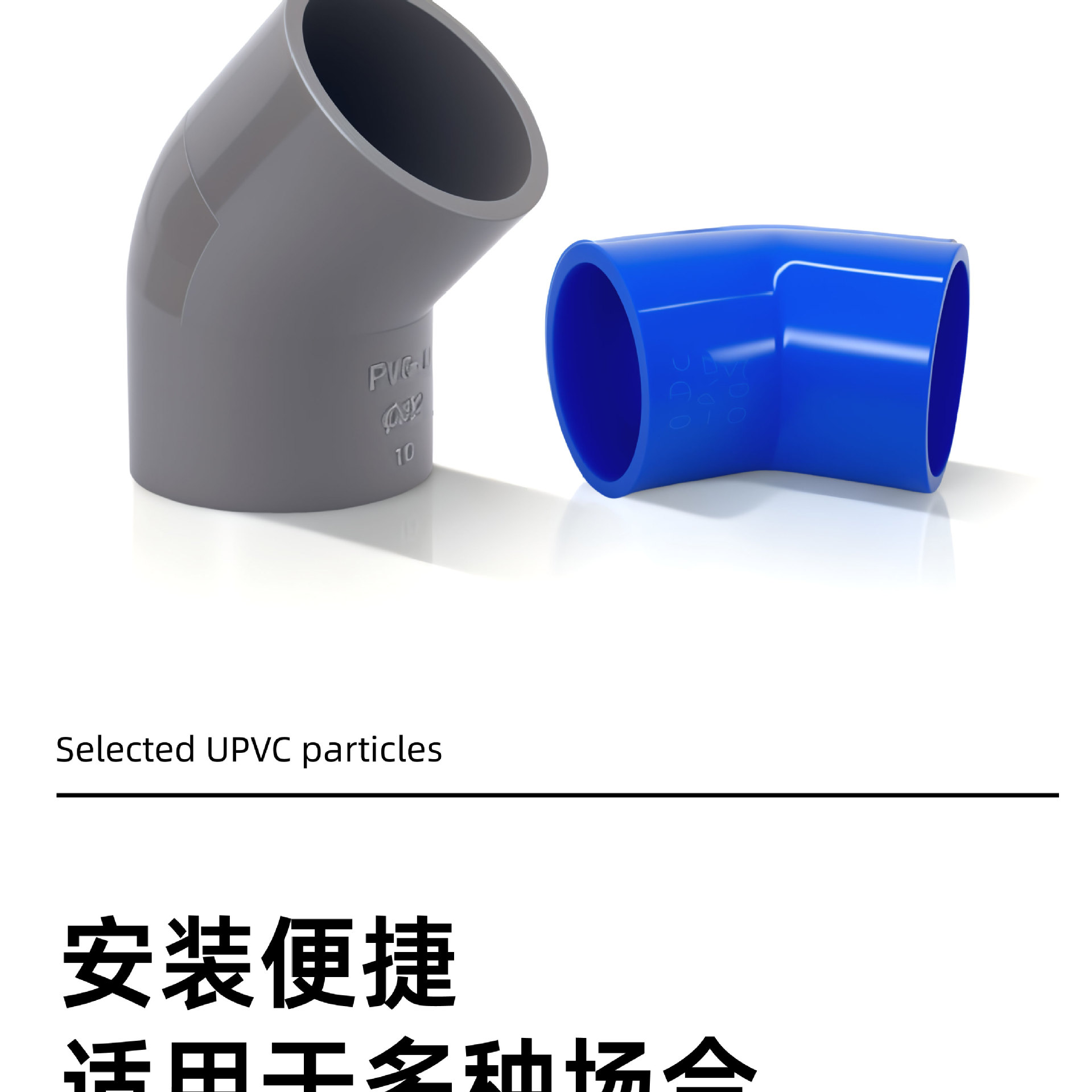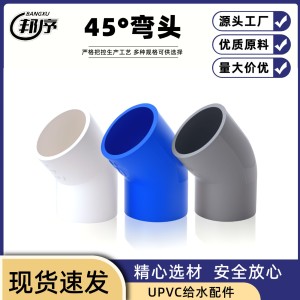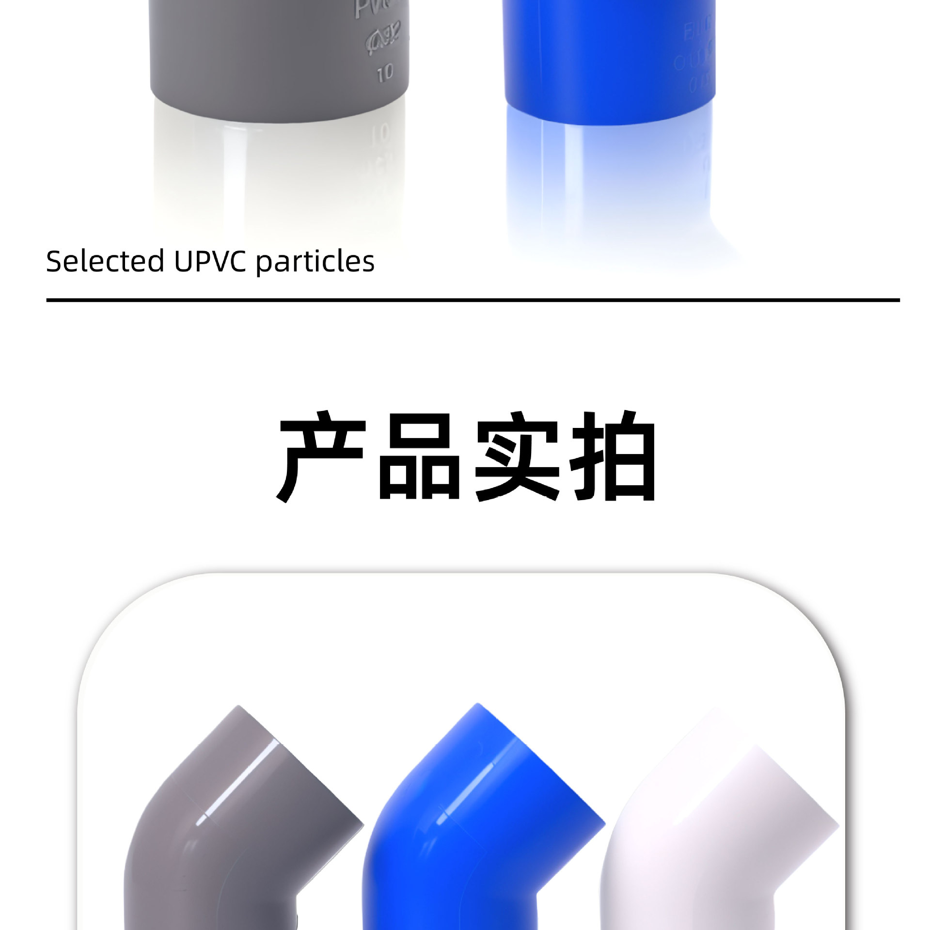 PVC45度小直弯给水管上水管配件 建筑工地加厚防漏水塑料接头管件
