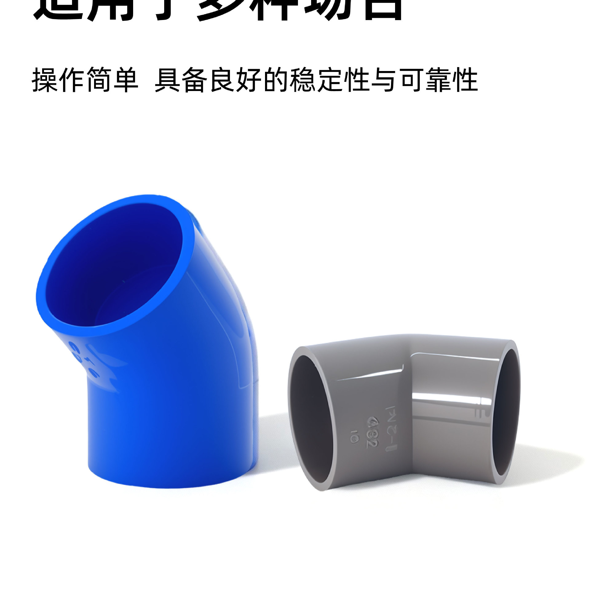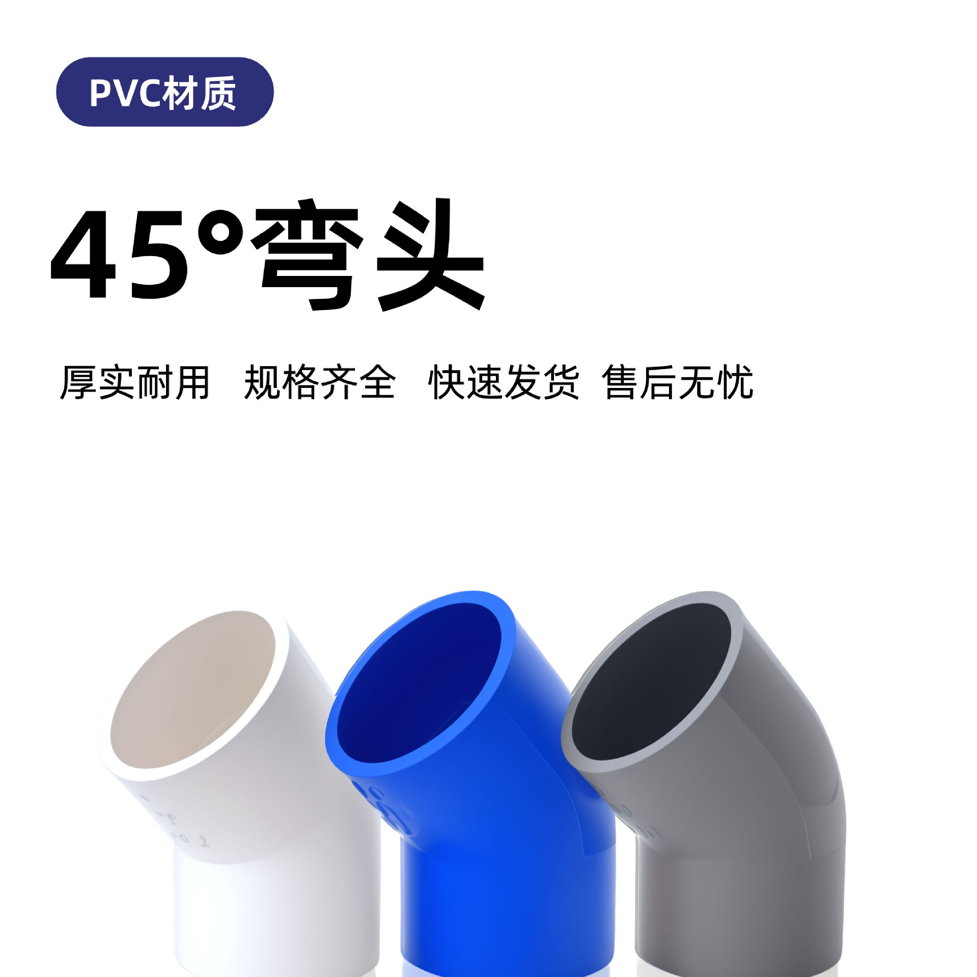PVC45度小直弯给水管上水管配件 建筑工地加厚防漏水塑料接头管件 2个