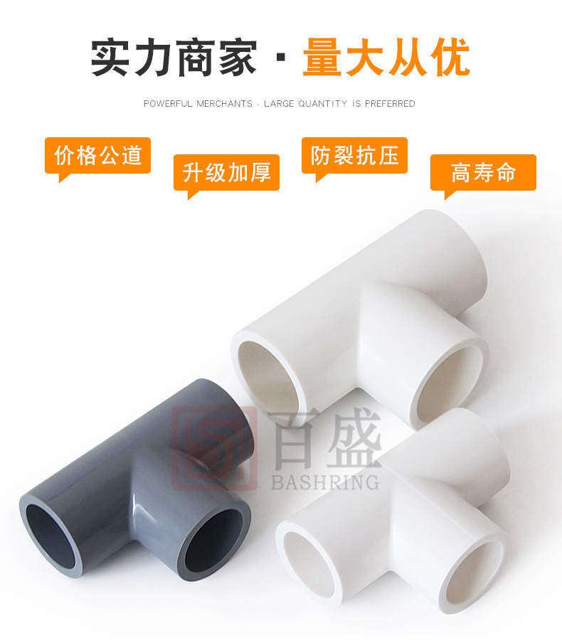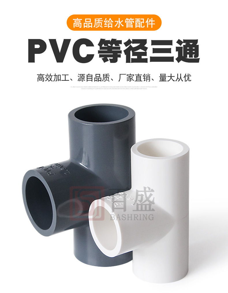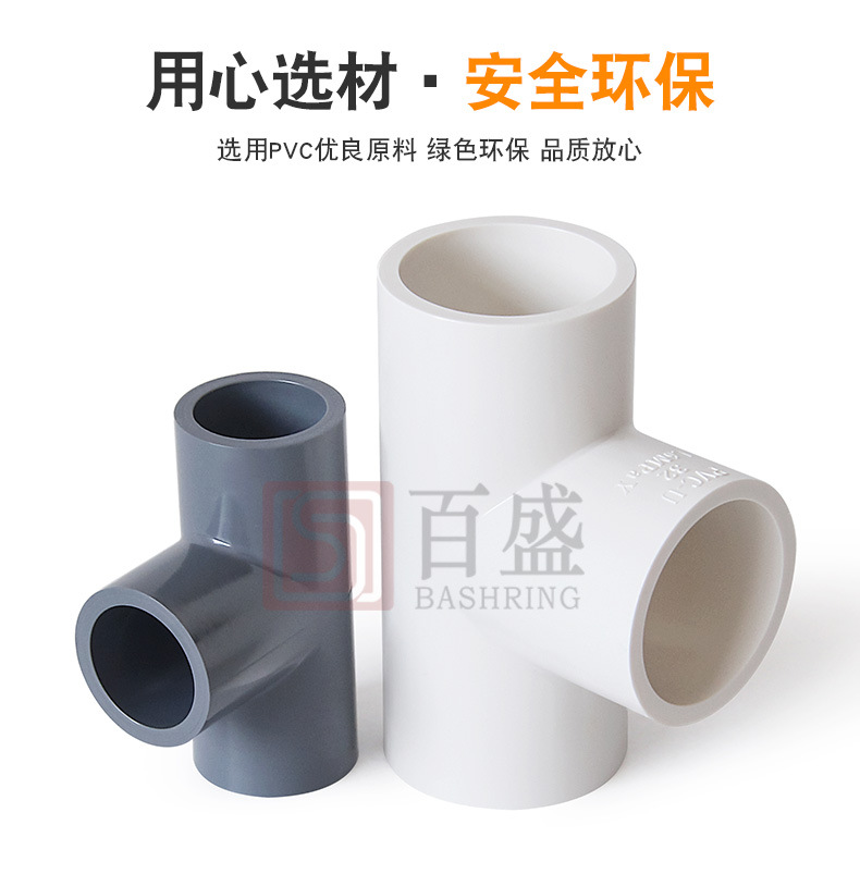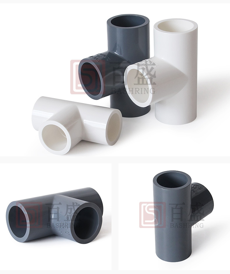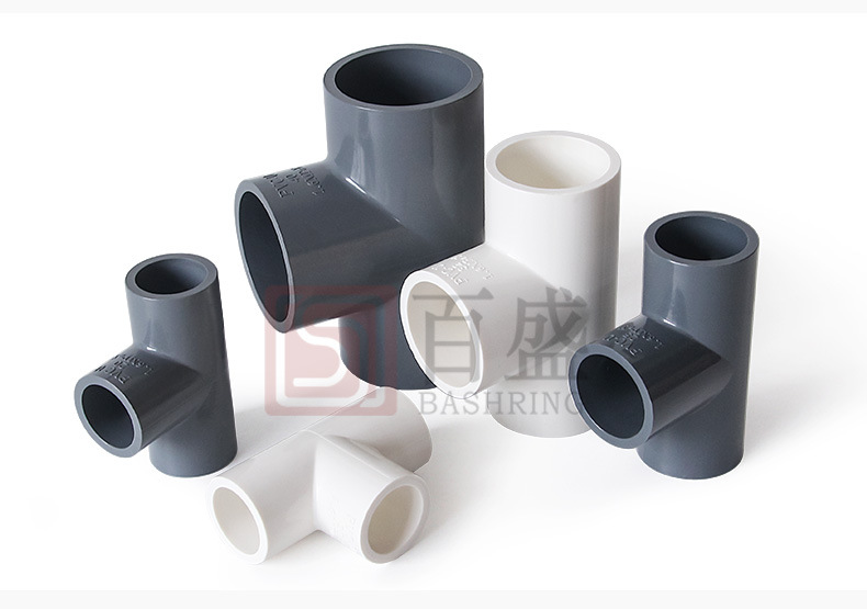 百盛PVC给水三通胶粘三叉加厚白色深灰16公斤等径三通工业级管件