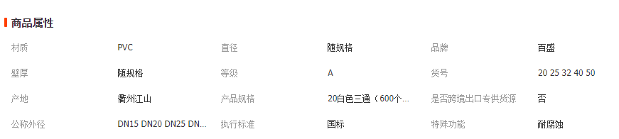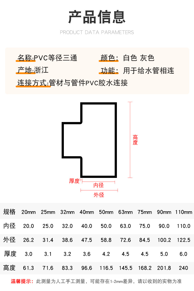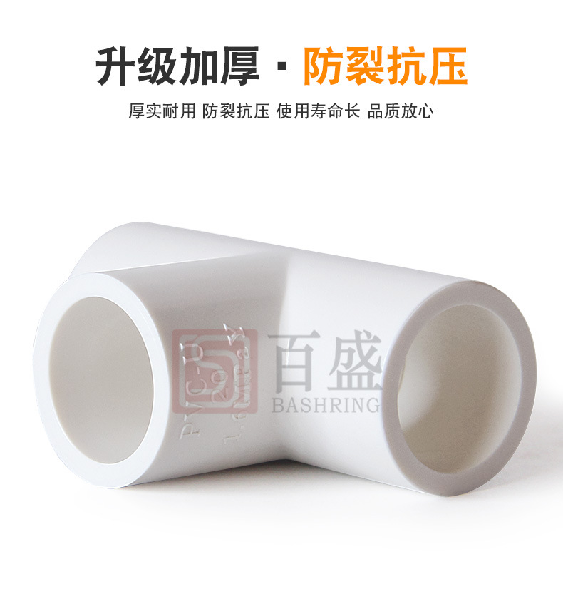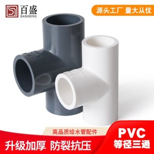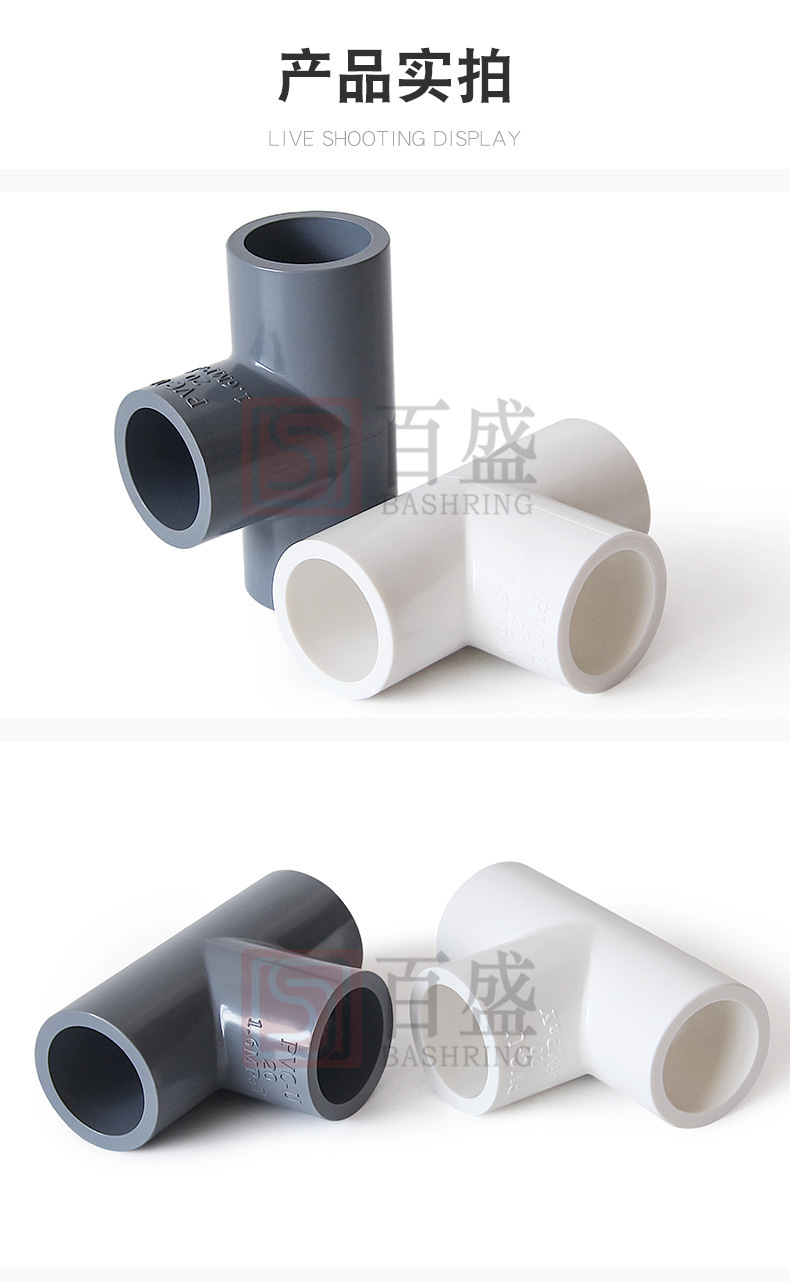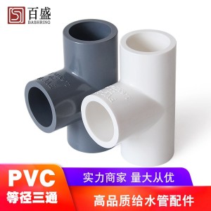 百盛PVC给水三通胶粘三叉加厚白色深灰16公斤等径三通工业级管件